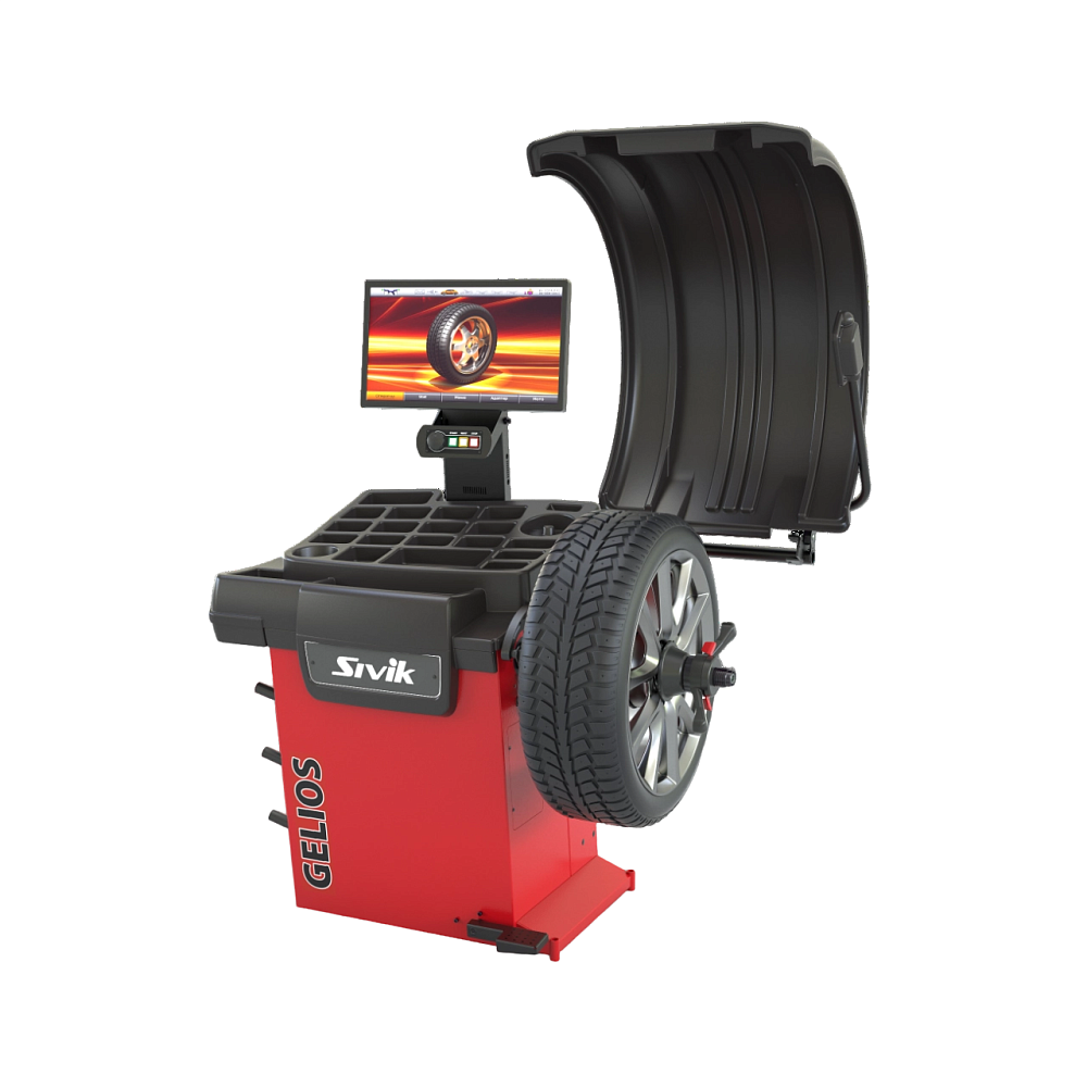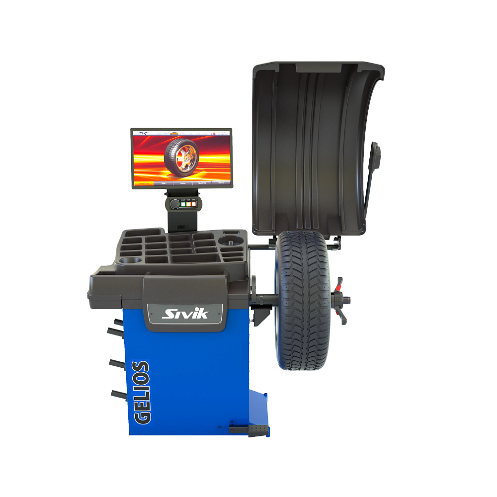 Sivik GELIOS NEW УЗ + ТЛУ (Гелиос УЗ + ТЛУ) - обновленная версия (серийное производство - с 01.07.2021 г.) балансировочного станка с автоматическим вводом всех параметров балансируемого колеса, с ЖК-дисплеем высокого разрешения 22″, для балансировки дисков диаметром 10″-28″.