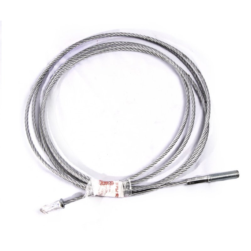 Трос подъема и синхронизации платформ. Изготовлен из прочного стального каната с металлическим сердечником, долговечен, выдерживает тяжелые нагрузки. В конструкции подъемника используется четыре троса разной длины; Длина троса: 14170мм. Диаметр троса: 9,5мм. Диаметр шпилек: 20мм. (размер ключа 29мм) Длина шпильки: 70мм. Применяемость к подъемнику: ПГ4-4.5