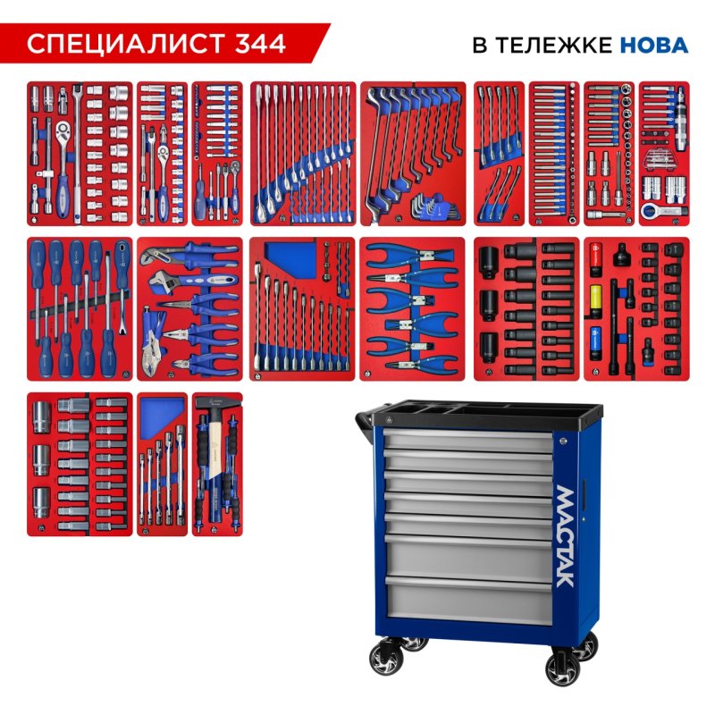 Набор инструментов 344 предмета, "СПЕЦИАЛИСТ 344", в синей тележке МАСТАК 50-07344B купить в Казани цена ✅ - Все для СТО