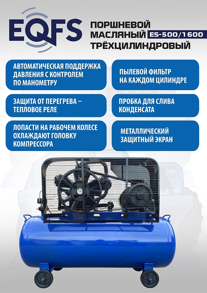 ES-500/1600 Компрессор поршневой трехцилиндровый купить в Казани цена ✅ - Все для СТО