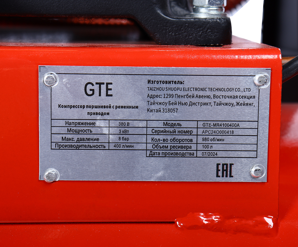 GTE-MR4100400A Компрессор поршневой с ременным приводом 380В купить в Казани цена ✅ - Все для СТО