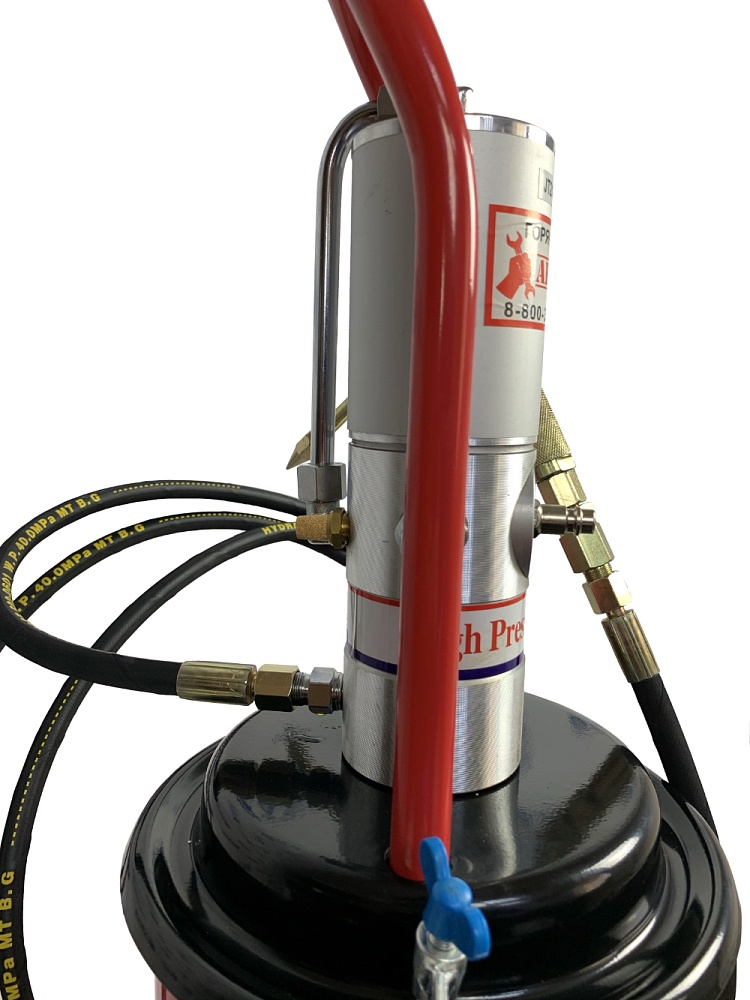 Нагнетатель густой смазки K77220 AE&T пневматический предназначен для подачи консистентной смазки (солидола) из стандартной бочки 180-220 кг в смазываемые узлы под давлением до 350 бар.