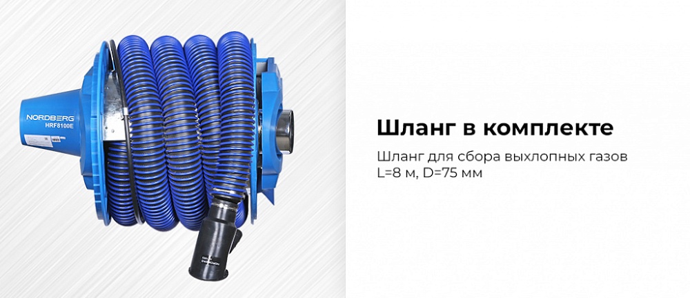 Катушка для сбора выхлопных газов с автоматическим приводом со шлангом D=100 и насадкой NORDBERG HRF8100E-KIT