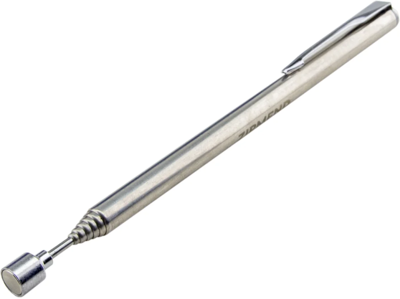 - В торце телескопической части установлен мощный неодимовый магнит, позволяющий удерживать железосодержащие детали.