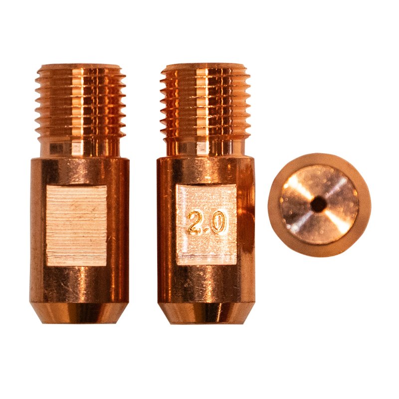 Наконечник – расходная часть MIG/MAG горелки, которая обеспечивает токосъём в процессе сварки, поэтому наконечники, так же называют контактными. Кроме того, через наконечник в процессе сварки подаётся проволока. Для оптимальной работы и идеального контакта необходимо, чтобы диаметр отверстия наконечника и сечение проволоки – совпадали.