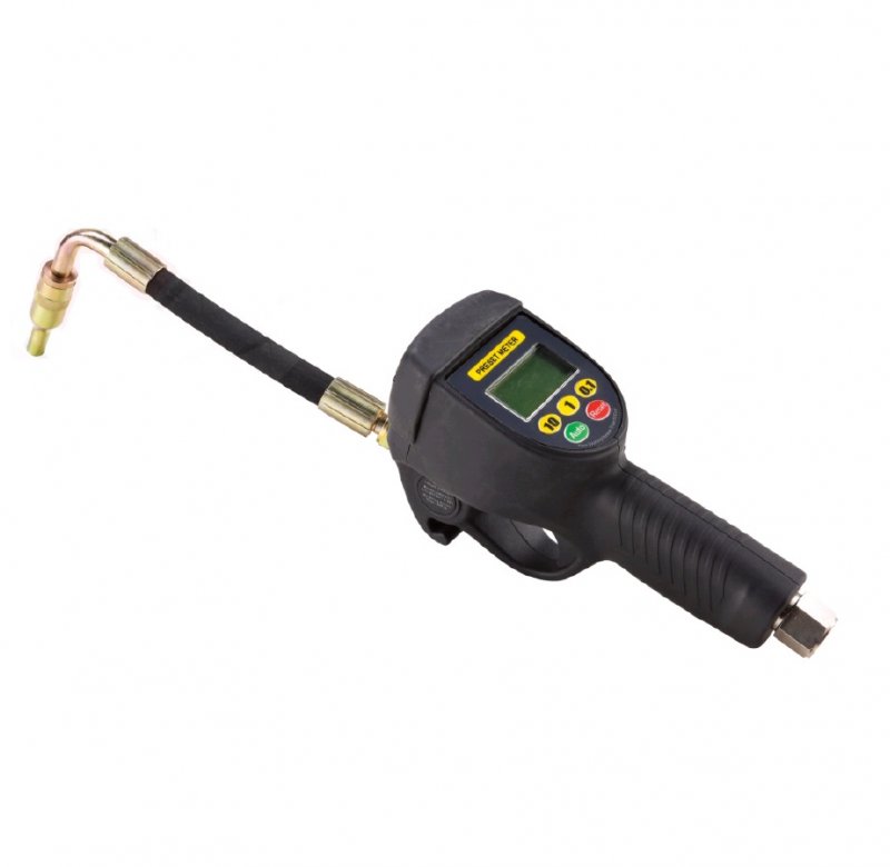 Пистолет для масла, с электронным счетчиком и гибким носиком для масла, ATF, антифриза и технических жидкостей под высоким давлением. Промышленный. Программируемый объем. Автоматический каплеотсекатель. Производительность: 35 литров в минуту при рабочем давлении до 200 Бар. Входное отверстие с диаметром резьбы 1/2 дюйма. Масса: 2,5 кг. Габариты: 640х300х720 мм. Помимо измерения доставленной жидкости, может отображать мгновенные скорости потока, обеспечивать общий сброс и разрешать настройку различных единиц измерения. Цифровые счетчики подходят для средней и высокой вязкости, включая смазочные материалы, дизельное топливо, антифриз, жидкость для мытья окон и другие жидкости.