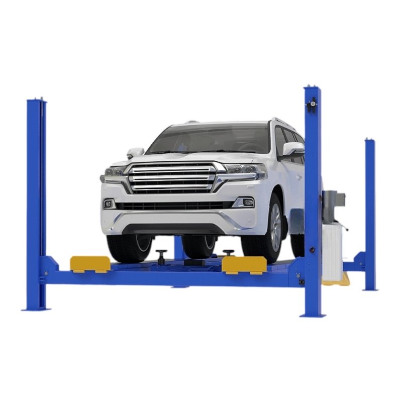 Подъёмник четырехстоечный SHL-4-460DE с электродвигателем и гидромасляным насосом предназначен для подъёма транспортных средств весом до 6000 кг.   Подъёмник позволяет проводить диагностику, обслуживание и ремонт легковых автомобилей и небольших грузовиков, в частности, проводить работы по измерению и регулировке углов установки колёс.