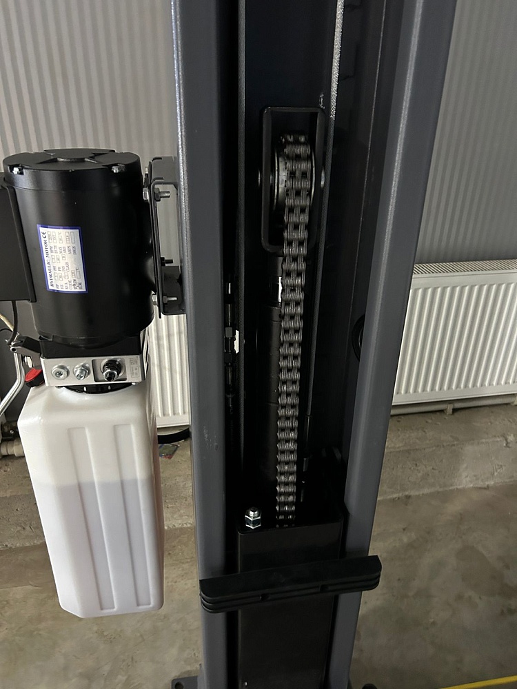 Двухстоечный электрогидравлический подъемник с верхней синхронизацией KRAFTWELL CORSO 2B/220 грузоподъемностью 4000 кг предназначен для подъема легковых автомобилей, внедорожников и легкого коммерческого транспорта с короткой колесной базой. За подъем автомобиля отвечают два гидравлических цилиндра с цепным приводом каретки. Такой тип привода уменьшает нагрузку на гидроцилиндры и обеспечивает долговечность их работы. Внутри колонн расположены каретки с поворотными лапами асимметричной конструкции, применяемые на подъемниках для американского рынка. Каретки снабжены нейлоновыми ползунами, обеспечивающими плавное перемещение внутри стоек. Простая и, в тоже время, надежная система механических стопоров со снятием с двух сторон обеспечивает безопасное удержание автомобиля в поднятом состоянии на протяжении всего времени ремонта. Габаритная высота подъемника составляет 3730 мм и позволяет устанавливать его в помещениях с высотой потолка от 4-х метров и выше.
