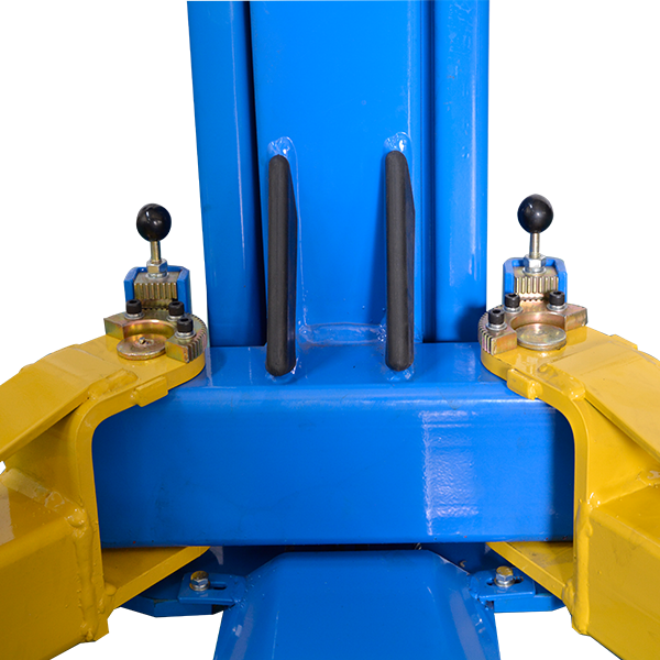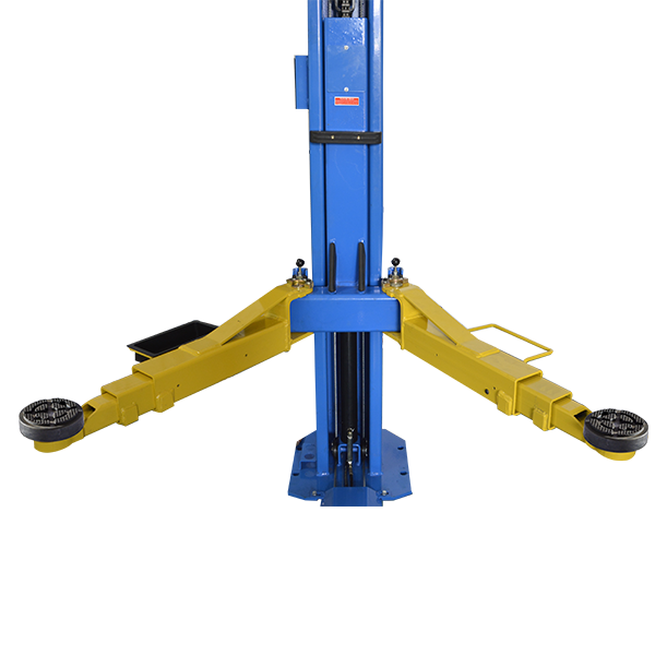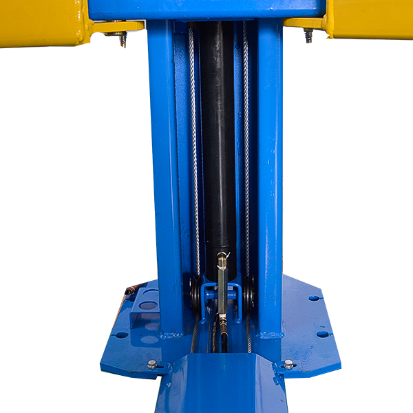 Двухстоечный электрогидравлический подъемник с нижней синхронизацией, грузоподъемность 5.5 т, механическое управление стопорами на одной колонне.