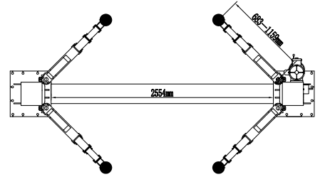 Подъемник двухстоечный электрогидравлический с управлением стопорами на одной колонне, асимметричный, двухцилиндровый, г/п 4000 кг., 2,2 кВт, высота подъема 1800 мм., расстояние между стойками 2680 мм., с нижней синхронизацией.