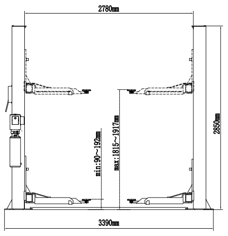Высота подъемника:    2850 мм