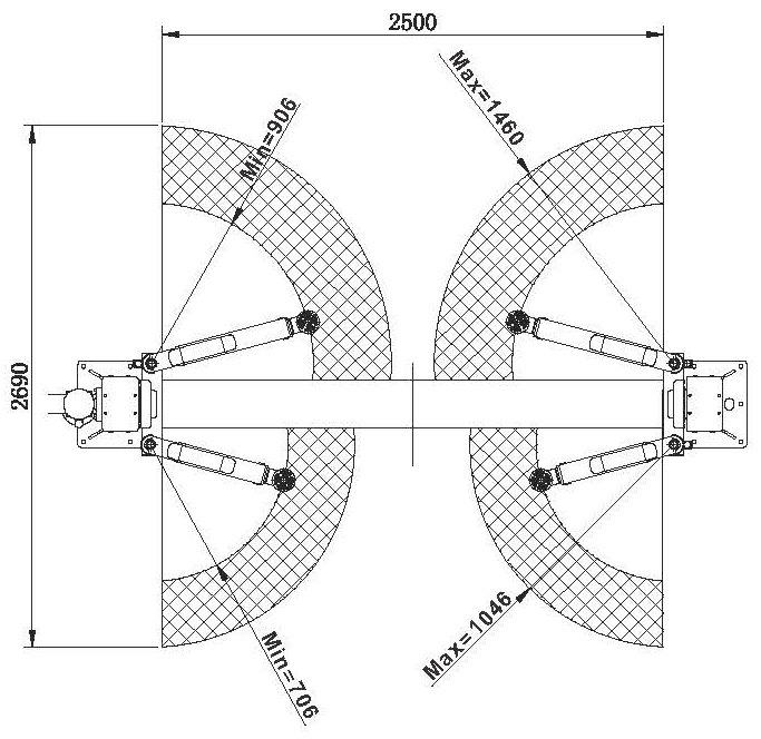 Длина задних лап 906–1460 мм Ширина проезда            2560 мм
