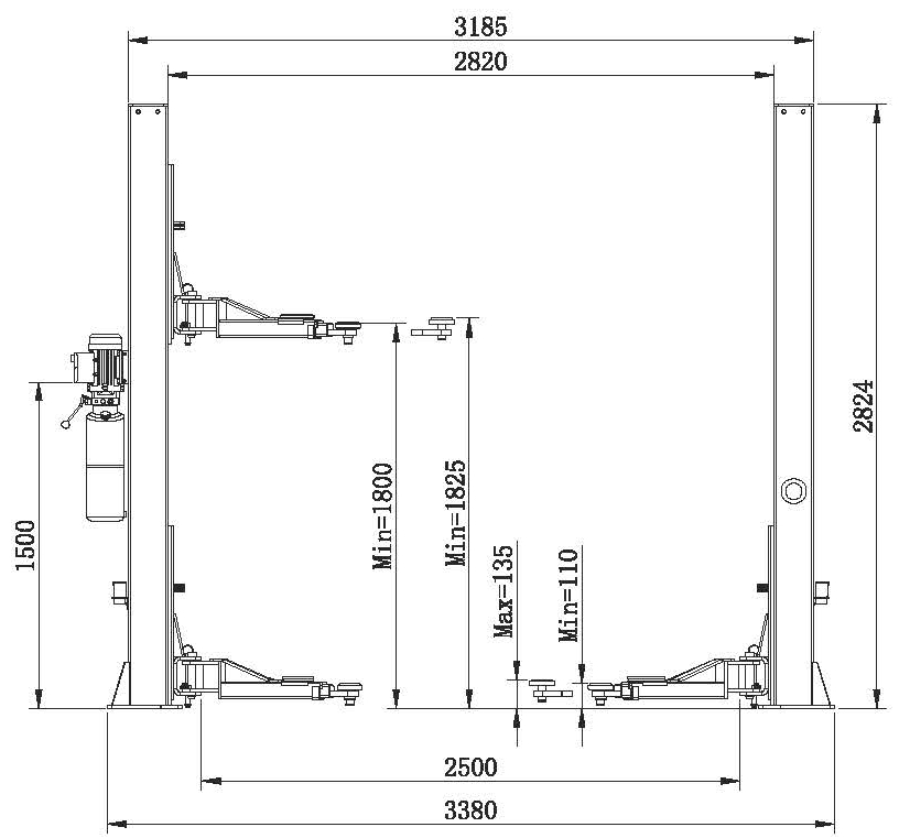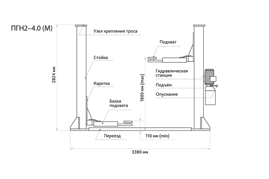 Объем бака гидронасоса 10 л. Общая высота 2824 мм