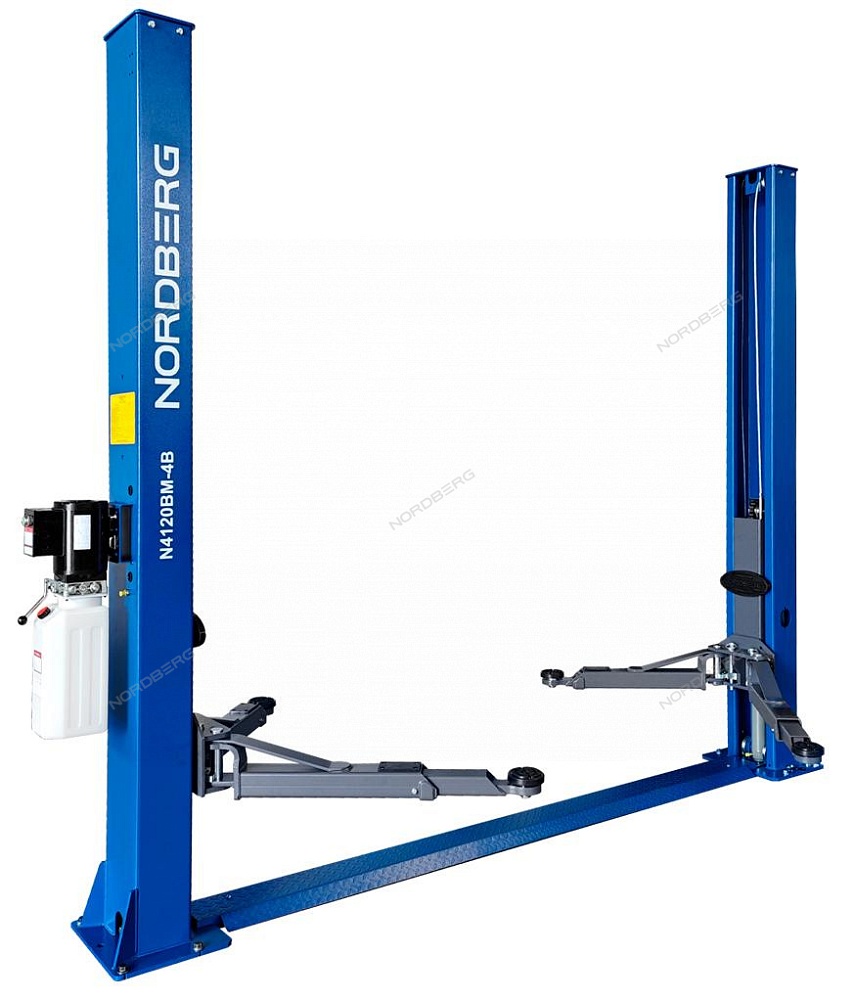 Подъемник 380V 2х стоечный 4т, со снятием стопоров с одной колонны (синий) NORDBERG N4120BM-4B