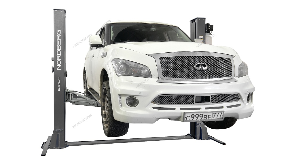 Подъемник двухстоечный 5 т, нижняя синхронизация, с электростопорами, 380 В, серый NORDBERG N4122AE-5G_380 купить в Казани цена ✅ - Все для СТО