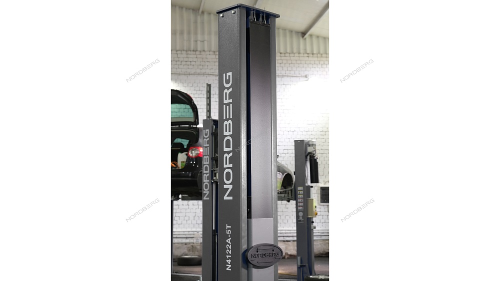 Подъемник двухстоечный 5 т, нижняя синхронизация, с электростопорами, 380 В, серый NORDBERG N4122AE-5G_380