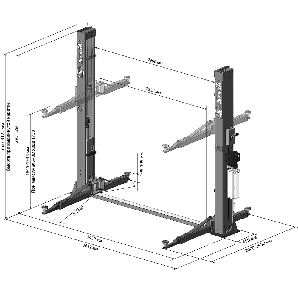 Подъемник двухстоечный Sivik ПГА-4100-НС 220В синий купить в Казани цена ✅ - Все для СТО