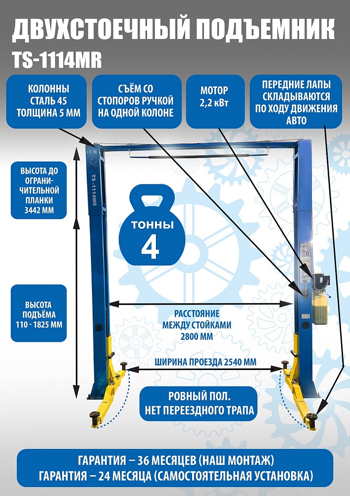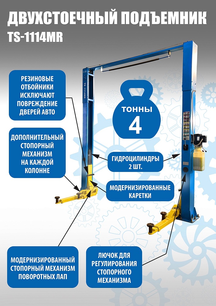 TS-1114MR подъемник 4 т, 2-х ст. электрогидравлический (2025) (220 V ТВ) купить в Казани цена ✅ - Все для СТО