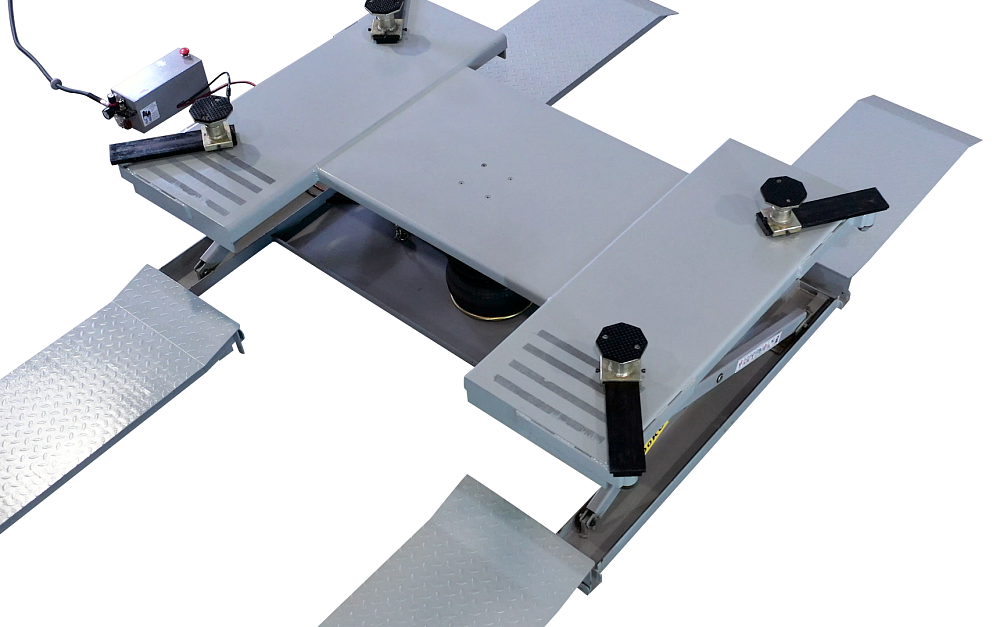 Ножничный пневматический подъемник используется, как правило, на шиномонтажных участках. Возможно также его размещение в кузовных цехах на арматурно-жестяных постах. Для работы подъемника необходим только подвод сжатого воздуха, который всегда присутствует и на шиномонтажном, и на кузовном участке.