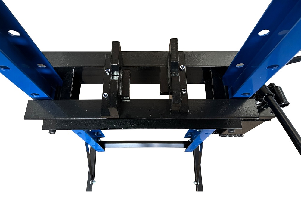 Пресс гидравлический ручной для автосервиса. Усилие 20 тонн. Насос — 2 плунжера.Пуансон 0-145 мм. Рабочее окно 500х1110 мм. Доставка по РФ и ТС. Поршень приводится в действие нажатием на ручку. Рекомендуется для выпрессовки деталей машин, втулок и т.п. в автосервисе, Гараже и СТО. Цвет синий. Гидроцилиндр с пуансоном имеет возможность перемещения по всей ширине станины.
