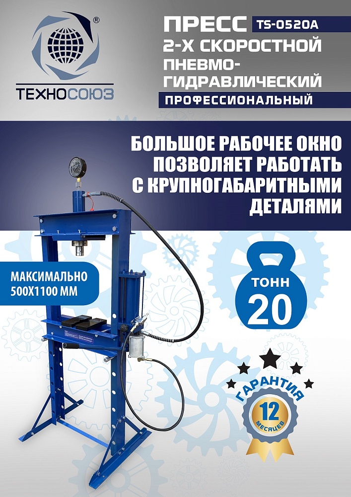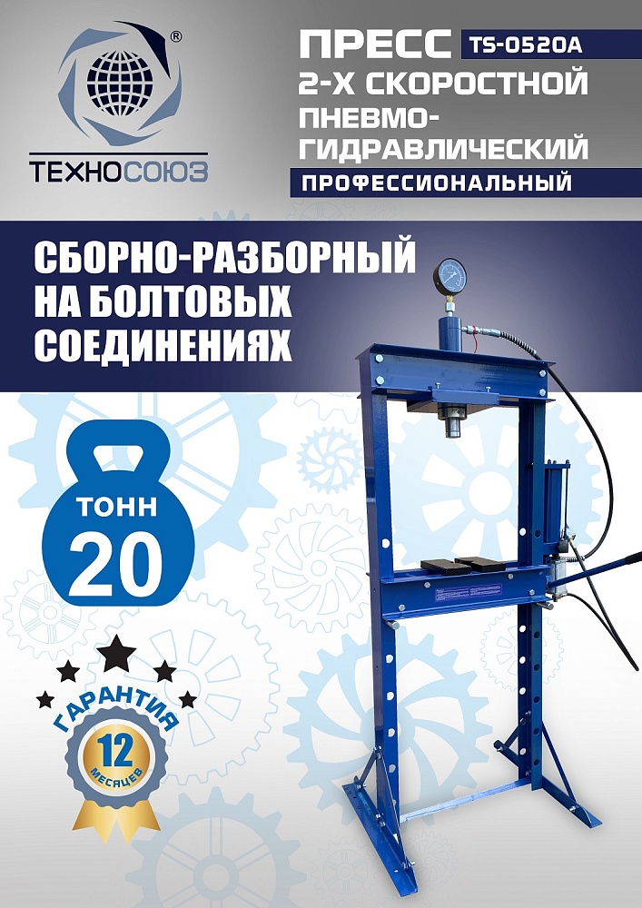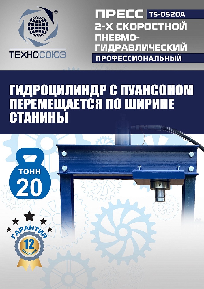 Пневмогидравлический пресс 20 тонн TS-0520A: скорость и точность для автосервиса