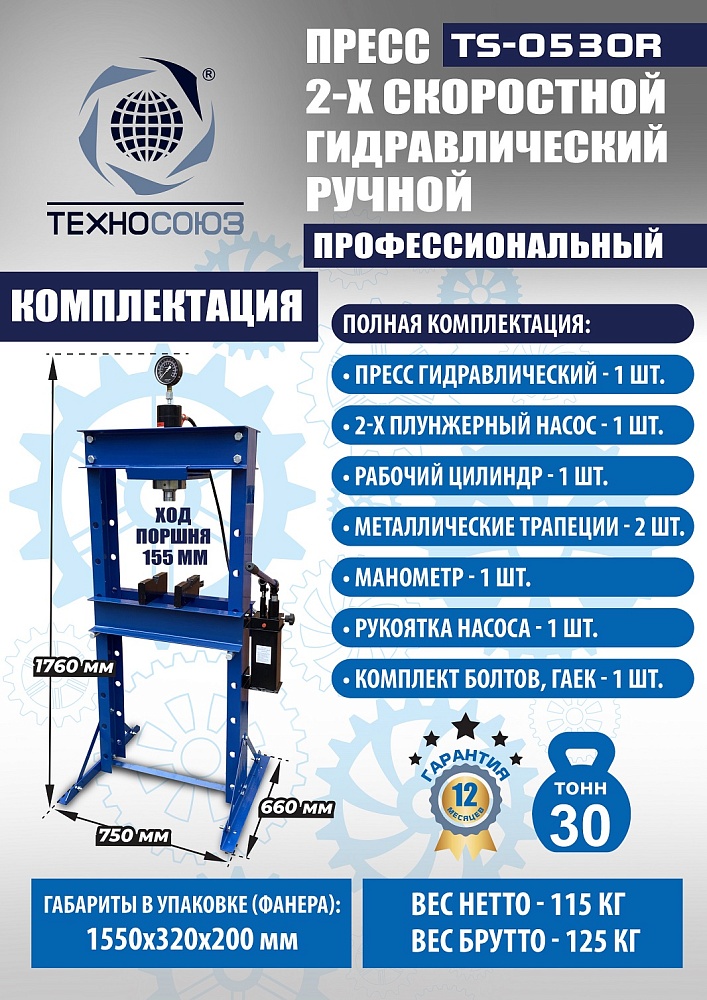 TS-0520R Пресс гидравлический ручной, 20 тонн