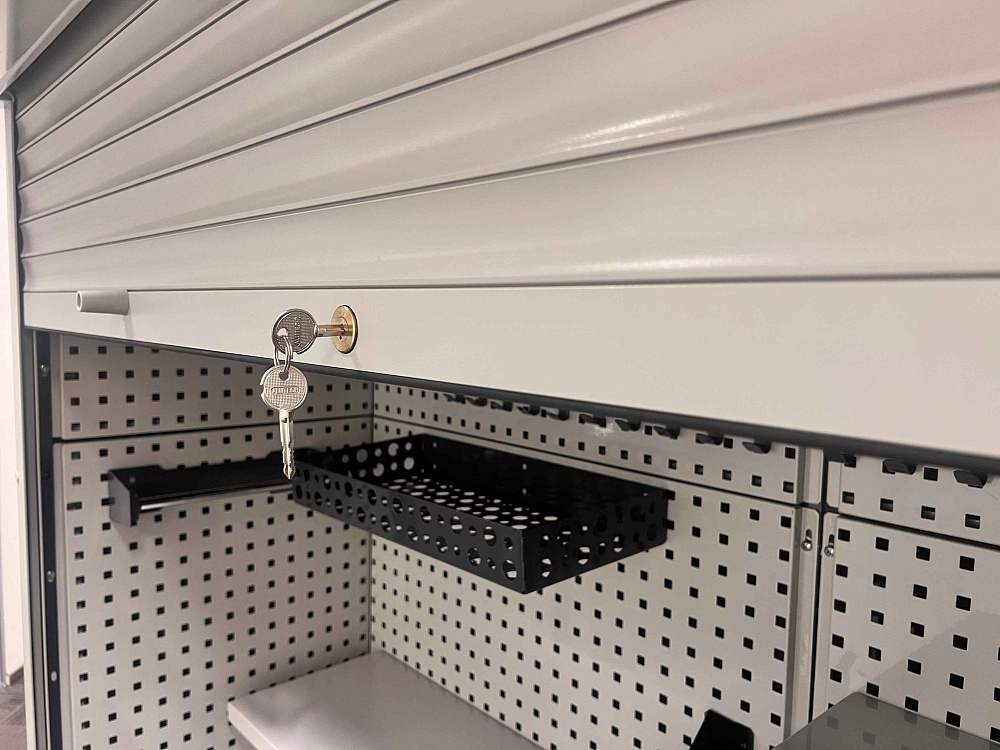 Двухсекционные роллетные шкафы представляют собой сборно-разборную конструкцию, состоящую из набора панелей, соединительной рамы и двух комплектов роллетных модулей.