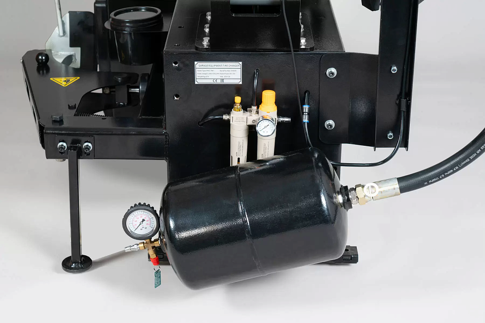 • Манометр контроля давления воздуха смонтирован на монтажной стойке. Накачка - нажатием ногой на педаль.