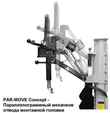 • Параллелограммный механизм отвода монтажной головки не только экономит место в мастерской, но и обеспечивает исключительную жесткость узла.