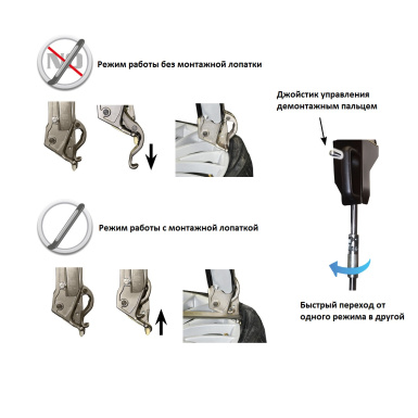 • Устройство монтажной головки с пневмоприводом монтажного пальца, позволяет работать как по традиционному способу – при помощи монтажной лопатки, так и обходится без неё.