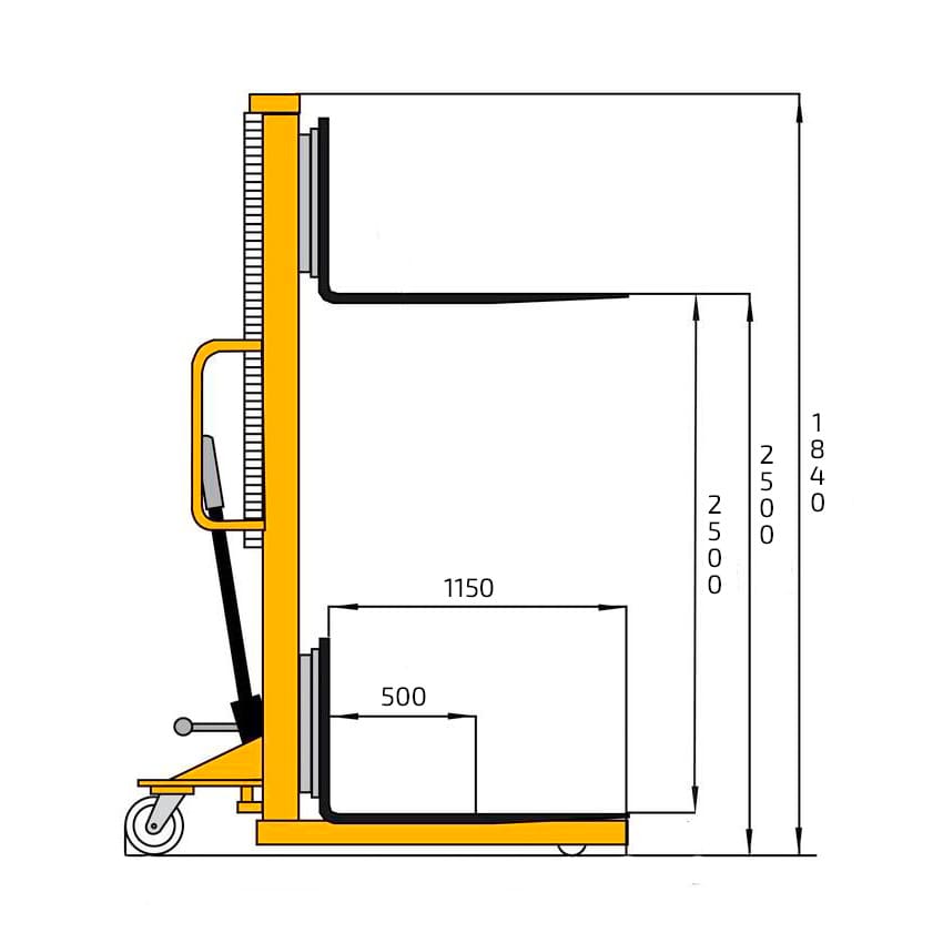 PLH 1000 25 RAKUDA, Ручной гидравлический штабелер, нагрузка 1000 кг., высота подъема 2500 мм, с раздвижными вилами (VILS) купить в Казани цена ✅ - Все для СТО