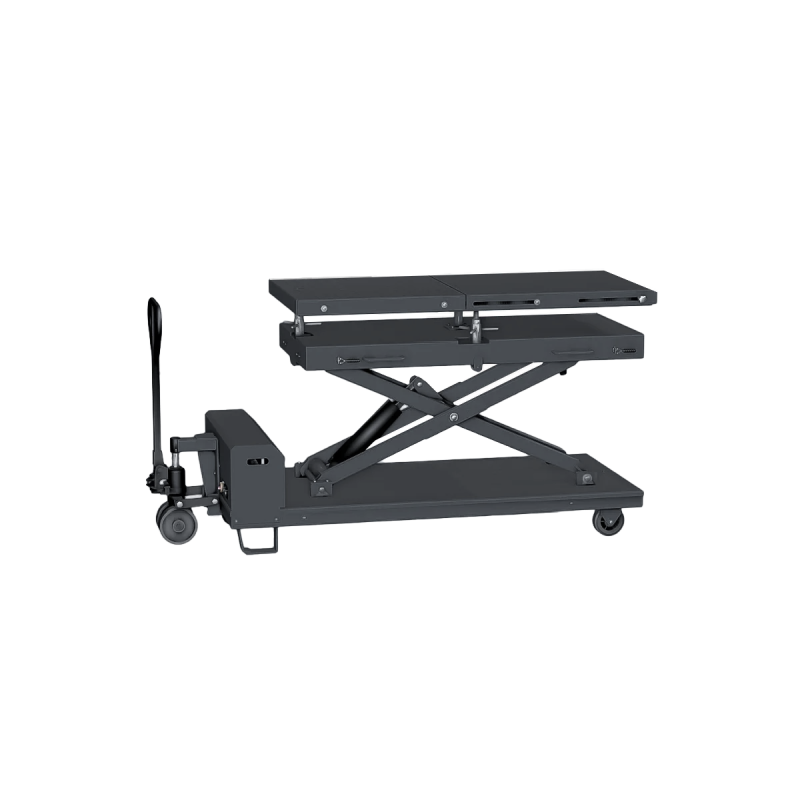 - Автоматическое наклонение стола. Верхний стол может наклоняться влево/вправо и вперёд/назад с помощью линейного привода, управляемого пультом дистанционного управления.