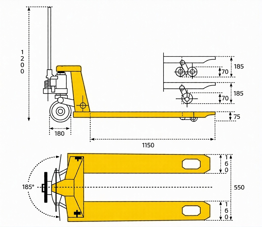 — компактная и функциональная гидравлическая тележка (рохля) для транспортировки грузов массой до 2 000 кг. Модель сочетает доступную стоимость, простоту эксплуатации и достаточную прочность для работы в условиях умеренной интенсивности. Подходит для складов, производственных цехов, торговых и логистических объектов.