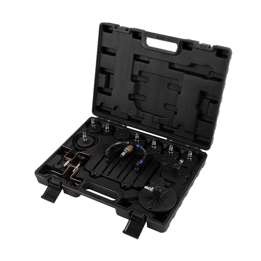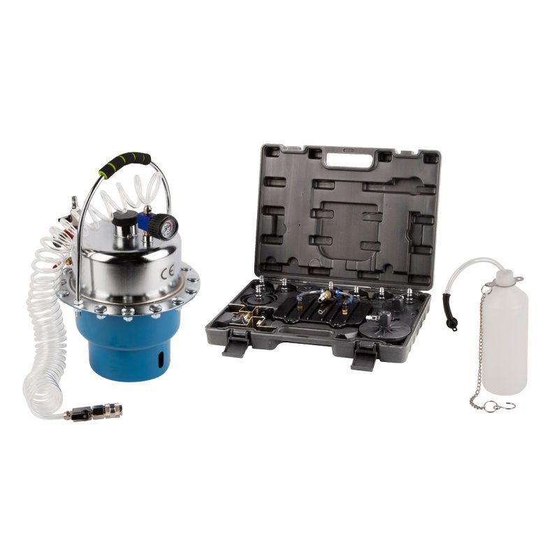 Набор для замены тормозной жидкости WiederKraft  WDK-8911L позволяет очень точно и быстро производить работу по замене тормозной жидкости любых автомобилей любых марок. Ускоряет процесс благодаря автоматической подаче тормозной жидкости в главный тормозной цилиндр. Исключает попадание в систему атмосферного воздуха.