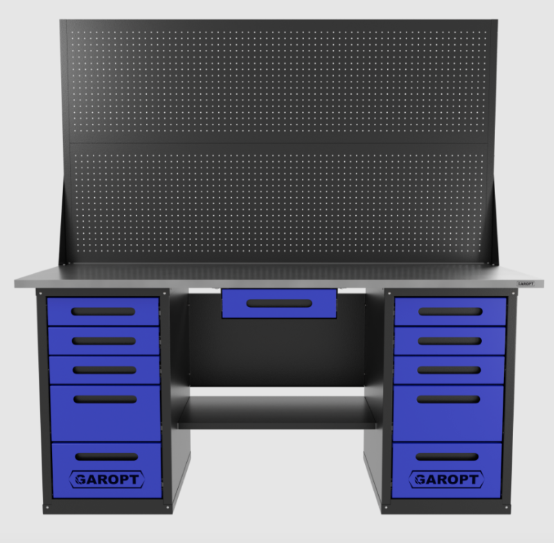 Усиленная столешница, надёжная стальная конструкция и удобная система хранения делают этот верстак оптимальным решением для ежедневных рабочих задач.