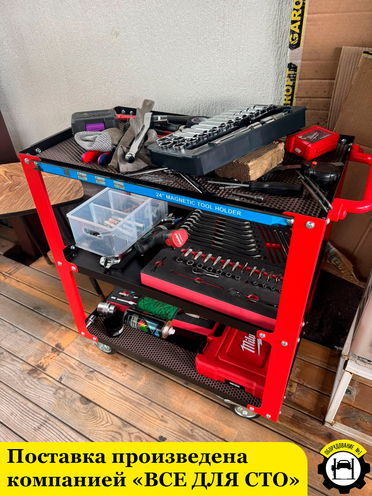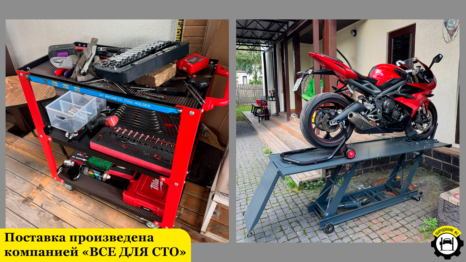 Наша компания "Все для СТО" произвела поставку Мотоподъёмника платформенного 0,5 т СОРОКИН и Инструментальной тележки Gt3.red Garopt